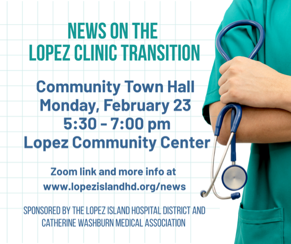 We invite you to a Town Hall where the community can hear directly from LIHD and CWMA about their proposed potential partner, Sea Mar Community Health Centers, to operate the clinic. During the meeting, you’ll receive updates on the process to identify a new operating partner, learn more about the potential partner and why they are a good fit for Lopez Island, and participate in a Q&A session with submitted questions.